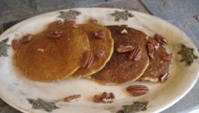 necessary because of the pureed pumpkin. Soy creamer is used for flavor and the oil in the batter makes the pancakes tender. Wheat berries are used for their incredible flavor. Whole wheat pastry flour is used to smooth out the pancakes, which would be too crunchy with just the wheat berry flour (you can exchange the pastry flour for more wheat berry flour if you have a very powerful blender like a VitaMix).